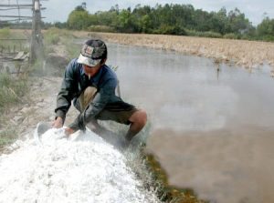 - Nuôi trồng thủy sản: Dùng làm chất khử trùng ao nuôi, giúp loại bỏ vi khuẩn, vi sinh vật, nấm và tảo độc. Có tác dụng khử phèn, duy trì độ ôn định pH của nước ao nuôi.